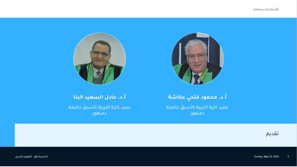 تحدث كل من البروفيسور محمود عكاشة والبروفيسور عادل البنا، بحضور عدد من الخبراء والقامات التربوية من مختلف الدول العربية، حيث شملت الندوة أربع محاور تتلخص في طبيعة العلاقة بين القياس والتقييم والتقويم. مُؤكديّن على أن التقويم لم يعد مقصوراً على قياس التحصيل الدراسي للطالب في المواد المختلفة بل تعداه لقياس مقومات شخصية المتعلم بشتى جوانبها، وبيان أهمية التقويم الأصيل ومبرراته، وضرورة تطبيقه في مؤسساتنا التعليمية، حيث أن تطبيقه ليس عملية صعبة، ويكفي أن تتوفر في مؤسساتنا إرادة قوية وإخلاص للبدء العملي في تطبيقه.