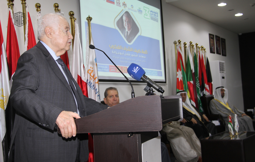 عمان - استضافت جامعة عمان العربية أعمال الكونجرس الدولي للمسؤولية المجتمعية في نسخته الثالثة تحت شعار "نحو تبني مبادرة دليل استرشادي للمواصفة القياسية للمسؤولية المجتمعية بالدول العربية"، برعاية معالي الدكتور عبد الله معتوق المعتوق رئيس مجلس إدارة الهيئة الخيرية الإسلامية العالمية والمستشار الخاص للأمين العام للأمم المتحدة، وبحضور ضيف الشرف سعادة الدكتور طلال أبوغزاله رئيس ومؤسس "طلال أبوغزاله العالمية".